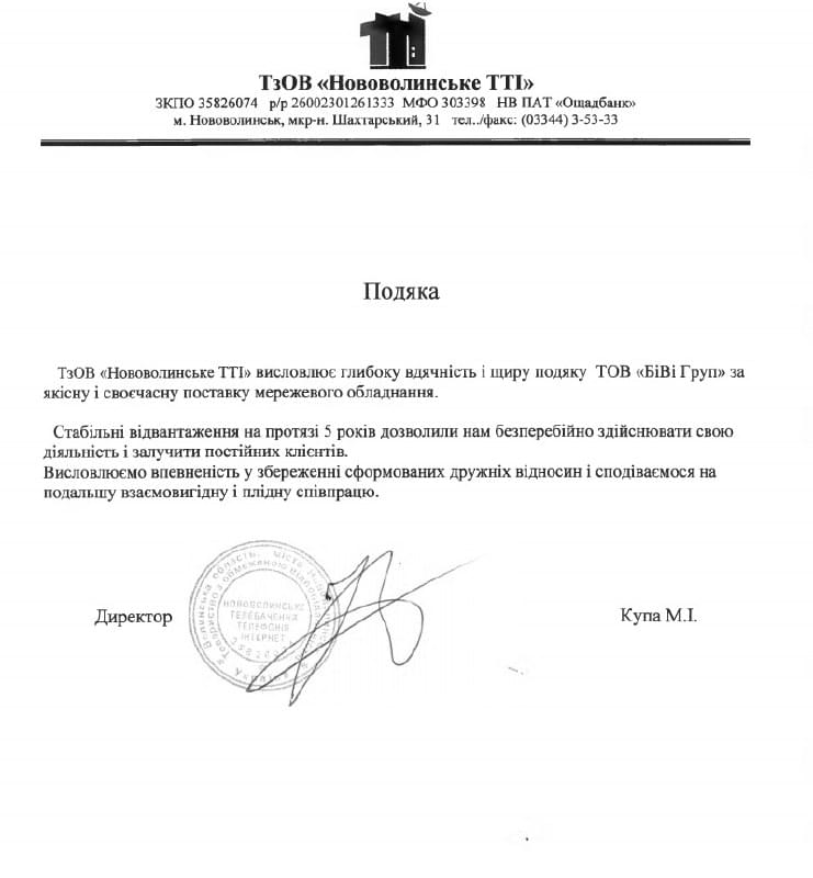 Ми один із найбільших в Україні реселерів й постачальників обладнання на ринку мережевих технологій та комунікацій - працюємо з 2008 року. А також є системним інтегратором з досвідом. 10-ти років.